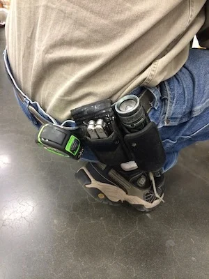 1. The 4-in-1 Screwdriver. This is a screwdriver that has different reversible bits inside the handle, allowing a single screwdriver to be turned into four (two sizes of Philips-head and two slotted). HM points out it’s technically a 6-in-1 because the hex-shaped shaft can be used on both sides as nut drivers (to remove nuts). “But most people won’t get that.” HM hates nothing more than those gift sets that have 137 screw drivers and you can never find the four you ACTUALLY USE because they all get separated. Most screws can be unscrewed with a 4-in-1. (His is in his tool bag photo.) Estimated cost: $7-9.